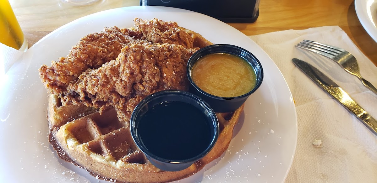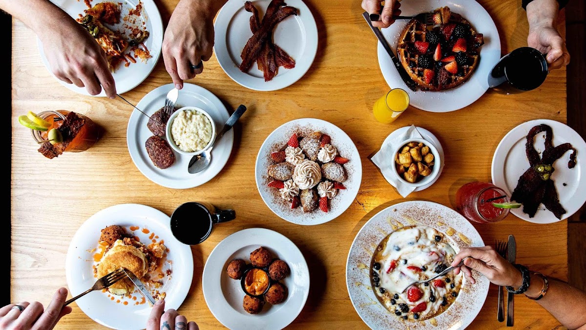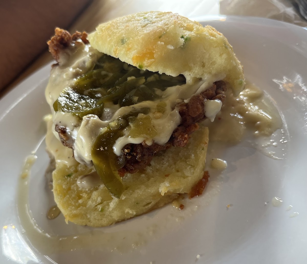 The menu leans heavily into Southern-inspired brunch with a playful twist. You’ll see classics like sausage gravy paired with unexpected ingredients such as fried green tomatoes or spicy honey. One of my regular orders includes what many reviewers describe as best biscuits on the beach, stacked high with crispy chicken and house-made sauces. The process is simple but effective: biscuits baked fresh throughout the morning, proteins cooked to order, and sauces prepared in small batches so flavors stay sharp. This method mirrors practices recommended by the National Restaurant Association, which notes that small-batch preparation often leads to higher customer satisfaction and better reviews.