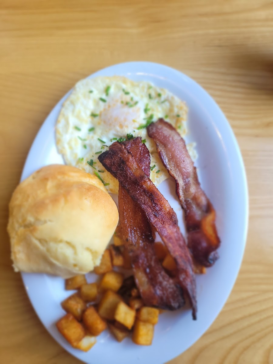 I’ve eaten here more times than I can count, usually after an early morning surf or a long beach walk. One thing that stands out is how consistent the kitchen is. Biscuits arrive hot, flaky, and sturdy enough to handle generous toppings. According to culinary research shared by organizations like the James Beard Foundation, balance between texture and moisture is what separates average biscuits from memorable ones, and this place clearly understands that principle. Each biscuit has a crisp edge with a soft center, which makes it perfect for both savory and sweet combinations.